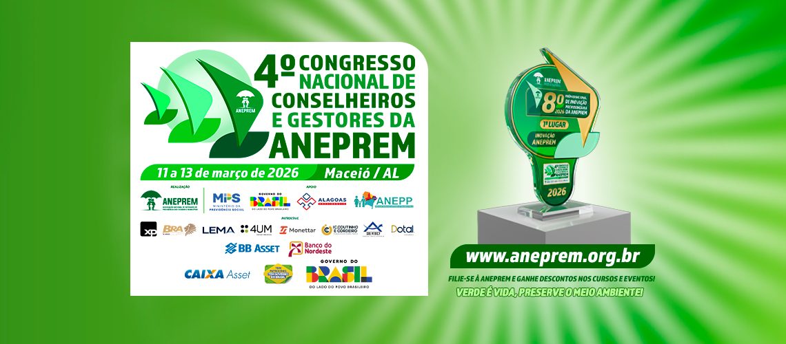 A Associação Nacional de Entidades de Previdência de Estados e Municípios – ANEPREM, através da Coordenação da Comissão Avaliadora, institui e torna pública a 8ª edição do Prêmio Nacional de Inovação Previdenciária da ANEPREM, referente ao exercício de 2026. O prêmio conta com o apoio institucional da Secretaria de Regime Próprio e Complementar (SRPC/MPS), da FUNPRESP e da Revista RPPS do Brasil, RPPS do Estado de Alagoas e ANEPP.